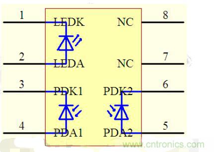 HCNR200/201包括一只高性能的發(fā)光二極管(圖中的LED),兩只極其相似的光電二極管(圖中的PD1和PD2)。當(dāng)LED中流過電流If時。其發(fā)出的光會在PD1和PD2中感應(yīng)出正比于LED發(fā)光強(qiáng)度的光電流Ipd1和Ipd2。由于PD1和PD2的特性非常相似,再加上安裝位置的精確性以及元件先進(jìn)的封轉(zhuǎn)設(shè)計保證了該元件的高線性度和增益的穩(wěn)定性。
