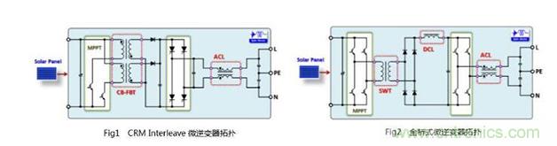 Fig1、2所示微逆變器是比較典型的兩種并網發(fā)電拓撲。Fig1中首先采用兩個交錯式臨界工作方式的升壓反激式變壓器,將其占空比按照正弦波半波規(guī)律,通過單級電路的電力的正弦化、隔離升壓和MPPT(MaximumPowerPointTracker)控制濾波,然后再全橋半波工頻換相濾波,高效地實現(xiàn)了低壓直流的直接并網發(fā)電。這是目前最具有潛力的微逆變器工作方式之一。Fig2則是通過全橋隔離升壓、濾波,再進行全橋逆變?yōu)V波并網的常規(guī)方式。這種方式的明顯缺點就是需要較多的磁元件,且高頻開關器件過多,成本和效率方面優(yōu)勢不足,且電路為了簡化,無一例外地采用了硬開關驅動,這樣隔離主變壓器的漏感要非常小,一般不得不采用多層電路板扁平變壓器結構,使得其寄生電容大,成本高,EMI也比較難處理。
