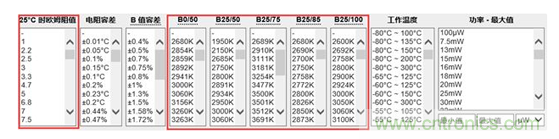 圖3,從Digi-Key網(wǎng)站中很快篩選適當NTC熱敏電阻參數(shù)