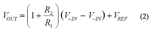 該儀表放大器的傳遞函數(shù)在形式上與經典三運放拓撲結構的傳遞函數(shù)相同,其計算公式為