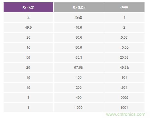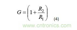 據(jù)等式(3),R1 與 R2 之比將增益設為: