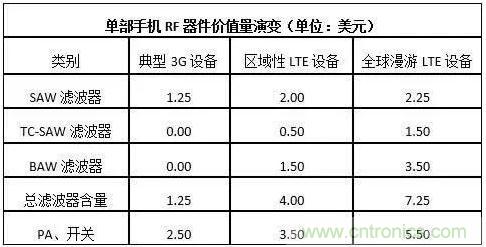 數據來源:《手機射頻前端模塊和組件-2017版》