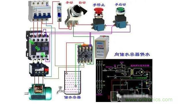 自動控制由傳感器和控制執(zhí)行機(jī)構(gòu)組成。液位控制器的傳感器一般是導(dǎo)線。利用水的導(dǎo)電性。水的導(dǎo)電性較差,不能直接驅(qū)動繼電器。所以要有電子線路將電流放大,以推動繼電器工作。繼電器就是執(zhí)行機(jī)構(gòu)。