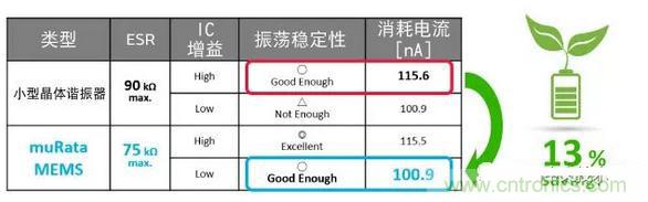 由于其低ESR的特性,可降低IC增益。因此,可抑制振蕩電路的消耗電流,實現(xiàn)整個設備的低功耗。