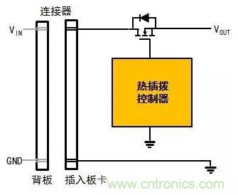熱插拔電路就是在插入電路板的電源之間串聯(lián)功率MOSFET,通過分立元件或集成IC控制功率MOSFET的開通和關斷,實現(xiàn)軟啟動緩慢接入電源,控制輸入浪涌電流對負載電容充電,從而保證后級電路從正在工作的系統(tǒng)中插入或移除時避免了出現(xiàn)連接火花、干擾背板供電和電路板卡復位等問題。