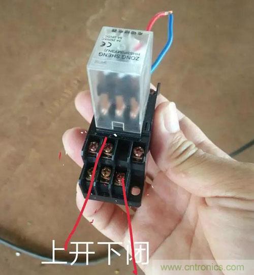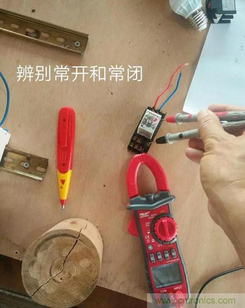 中間繼電器的每一組控制觸點(diǎn)分為公共端,常閉點(diǎn)和常開點(diǎn)。和線圈進(jìn)線端一個(gè)方向的是觸點(diǎn)公共端,出線端分常開和常閉。判斷常開和常閉的方法是把繼電器插上繼電器座,用萬用表的通斷檔分別測量公共端到兩個(gè)出線端的通斷,通的是常閉,不通的是常開。如果沒有萬用表,我這里有一個(gè)小經(jīng)驗(yàn)告訴大家,一般中間繼電器的觸點(diǎn)都是上開下閉,就是上面一排是常開點(diǎn),下面一排是常閉點(diǎn)。大家可以參考一下。后面有圖。