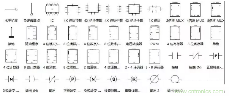 以寄存器、轉(zhuǎn)換器、計數(shù)器為代表的基礎(chǔ)集成電路元器件,在電路圖中較為常見。
