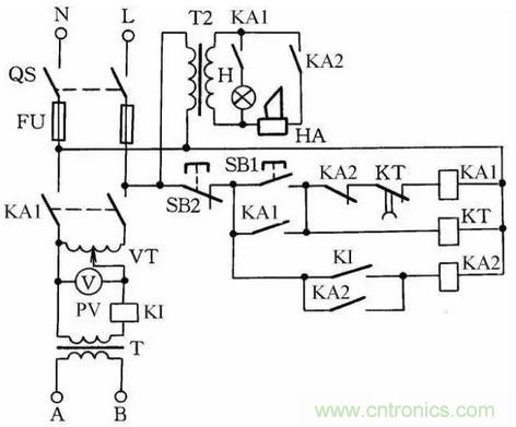 若被測物絕緣擊穿,電流即迅速增加,過電流繼電器KI動作,KA2得電動作并自鎖,KA1失電,KA1的常開觸點切斷主回路電源,蜂鳴器HA發(fā)出聲響,按下SB2后電路全部關(guān)斷。應(yīng)用操作這種儀器時,要特別注意人身安全,工作通電時,高壓測試區(qū)禁止人靠近。