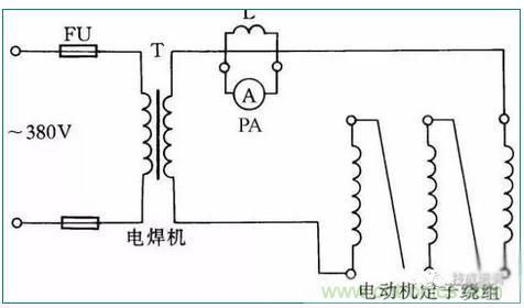 如果電動機受潮,而體積又較大,很不容易拆下放在烘箱內(nèi)干燥。可將電焊機低壓電通入電動機三相繞組,用電流升溫干燥電動機。此方法適用于干燥20~60kW的電動機,電焊機的容量應(yīng)根據(jù)電動機容量而選用。