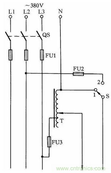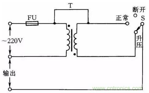 圖34:擴大單相自耦調(diào)壓器調(diào)節(jié)電壓范圍線路