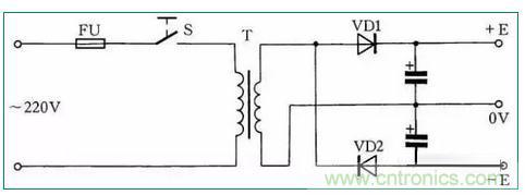 在實際工作中,往往用電設(shè)備為雙電源,并且對稱。在手頭只有單電源的情況下,按圖37所示連接,即可使其變?yōu)殡p對稱電源使用。