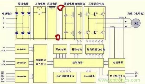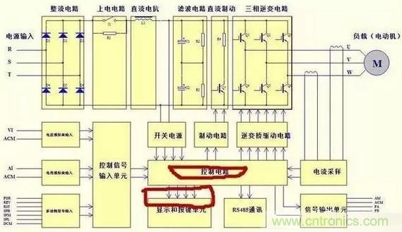 變頻器的控制電路包括開關(guān)電源、驅(qū)動電路、檢測電路(電流、電壓、溫度、故障、檢測)、操作控制電路和其他基本電路。