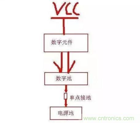 二、對于板子上只有數(shù)字地、電源地這種情況: