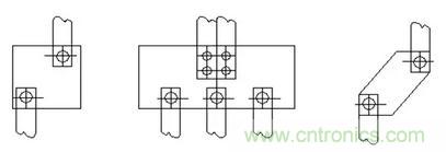(8)母線寬度大和長度短都不能曲立彎,進出線母排寬度差比較大時,可在不影響搭接面積的前提下,允許有過度母排,偏向母線的一側(cè)或改變母線的連接。見下圖