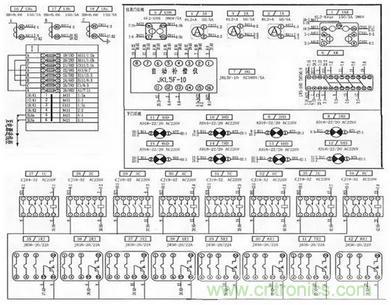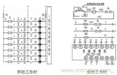 手動工作時,轉(zhuǎn)換開關(guān)KK從kk21-22開始每轉(zhuǎn)過一個位置多接通一個LED燈,表示1—8個電容器依次進入使用狀態(tài);自動接通時,轉(zhuǎn)換開關(guān)KK如在kk1-2位置停下,那么停下的位置,其余均接通。(如下圖)