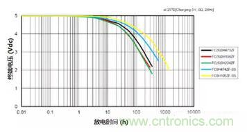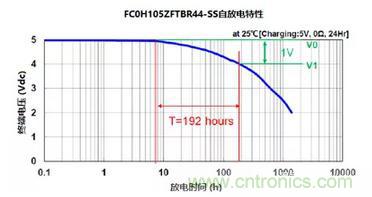 圖2:KEMET公司FC系列超級(jí)電容器的自放電特性