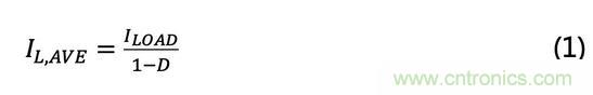 電感值的選擇很重要,因?yàn)樗鼪Q定了電感上的電流紋波,從而決定了輸出端的電壓紋波。根據(jù)圖1,平均電感電流IL,AVE由下式給出。