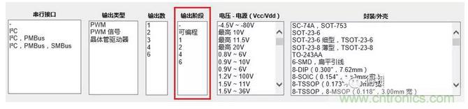 Digi-Key官網(wǎng)上,升壓控制器篩選列表參數(shù)中提供了不少參數(shù)選項(xiàng)以協(xié)助工程師選料,其中“輸出階段”便是其中之一。“輸出階段”即代表芯片可以有多少相輸出。
