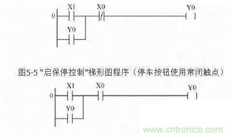 輸入端的電氣原理圖中停止按鈕SB0用常閉觸點(diǎn),串在控制線中,用于停機(jī)控制。 啟動(dòng)按鈕SB1用常開觸點(diǎn)。在設(shè)計(jì)的兩個(gè)梯形圖完成的控制功能相同,但停機(jī)信號(hào)X0使用的觸點(diǎn)類型不同,那么連接在端點(diǎn)的外部停機(jī)按鈕觸點(diǎn)類型也就不同