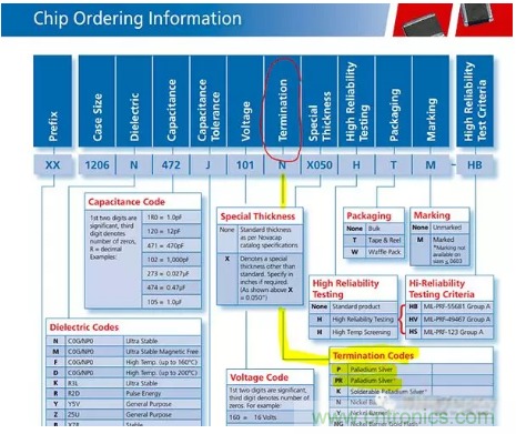 對(duì)于Knowles Novacap來(lái)說(shuō),它們的環(huán)氧樹脂安裝代碼由“P”(非RoHS)和“PR”(RoHS)指定為“鈀銀”端子。