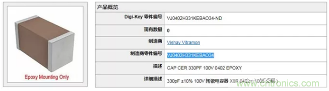 并非所有MLCC電容的供應(yīng)商都提供這種環(huán)氧樹脂安裝選項(xiàng),如Digi-Key代理的原廠中,有四家提供該選項(xiàng) - TDK, Murata, Vishay Vitramon和Knowles。