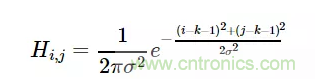 對于窗口模板的大小為(2k+1)×(2k+1),模板中各個元素值的計算公式如下: