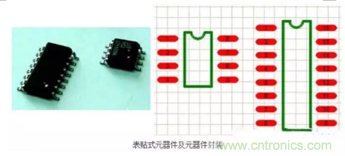 表貼式的元器件,指的是其焊盤只附著在電路板的頂層或底層,元器件的焊接是在裝配元器件的工作層面上進行的,如圖所示。