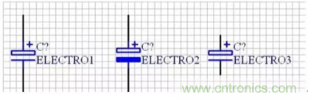 常用的原理圖符號為CAP,對應的電容封裝為RAD系列,如“RAD-0.1”到“RAD-0.4”,其中0.1和0.4指電容大小,一般用“RAD0.2”。