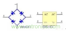 (6) 整流橋。普通整流橋的實物如圖F1-18(a)所示,常用名稱是“BRIDGE1”和“BRIDGE2”,如圖F1-18(b)所示,常用的封裝形式如圖F1-18(c)所示。