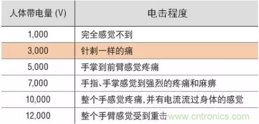 下面介紹了當(dāng)人體帶電時帶電量與所感受到的電擊之間的大致關(guān)系。