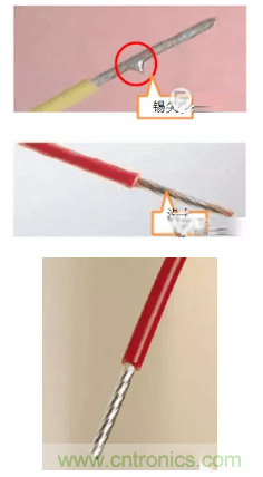 浸錫就是將金屬表面沾上一層錫,防止氧化,方便焊接。時至今日,浸錫在連接器行業(yè)中仍是廣泛應用,浸錫的好壞直接影響到產品的性能及使用壽命。我們都知道導體的電阻在電流的作用下會發(fā)熱,電流越大發(fā)熱量也就越高,浸錫工藝可以將一根一根細導線間的空氣用錫填滿從而減少發(fā)熱量。同時由于多股導線容易散,直接壓在接線端子上時,接觸面積會減少,所以很多廠家選擇浸錫的方式,以免接觸不良發(fā)熱燒壞。浸錫標準比較嚴格,需均勻,平滑,厚度0.05~0.1mm,不能有錫尖,凸錫球,漏錫,堆疊,變形等情況發(fā)生,否則反而會加大接觸電阻,增加發(fā)熱量。