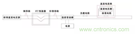 在變送器輸入端放置一個(gè)溫度計(jì),測(cè)得冷端溫度值,由分度表查得此溫度電勢(shì)值Eω,再根據(jù)熱電偶分度表的電勢(shì)值E0,由毫伏信號(hào)發(fā)生器輸出(E0-Eω)值,即模擬熱電偶的輸出,測(cè)量熱電偶溫度變送器4-20mA電流輸出值,計(jì)算變送器的測(cè)量精度。這種方法存在環(huán)境溫度變化和溫度計(jì)測(cè)量冷端誤差兩方面,無(wú)法消除這兩方面帶來(lái)的測(cè)量誤差。因此,通常作為現(xiàn)場(chǎng)零時(shí)比對(duì)測(cè)量時(shí)使用,不做為溫度變送器檢定校驗(yàn)使用。