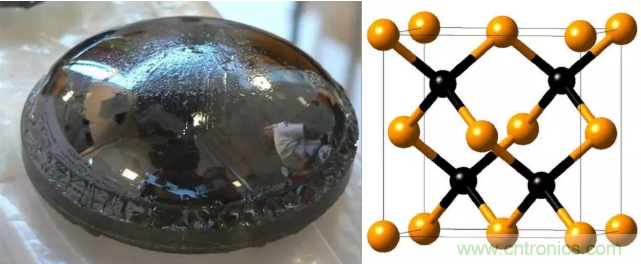 左邊:碳化硅(SiC)晶體;右邊:SiC晶體結(jié)構(gòu)