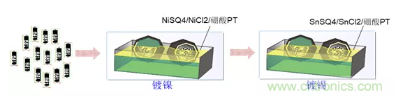 原理:先進(jìn)行預(yù)熱,預(yù)熱溫度110°C ,然后利用真空高壓將液態(tài)的Ni濺渡到端面上,形成側(cè)面導(dǎo)體。Ni具有良好的耐腐蝕性,并且鍍鎳產(chǎn)品外觀美觀、干凈,主要用在電鍍行業(yè)。