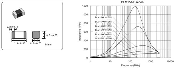 此次通過開發(fā)新材料和改進(jìn)加工工藝,村田成功開發(fā)生產(chǎn)出了小型低直流電阻產(chǎn)品,0402尺寸的片狀鐵氧體磁珠BLM15AX系列,與之前的產(chǎn)品相比降低了60%。從而此系列產(chǎn)品節(jié)省了小型便攜式設(shè)備電路的耗電,使電池壽命得到了延長。在此要介紹的就是這款新型的片狀鐵氧體磁珠BLM15AX系列。