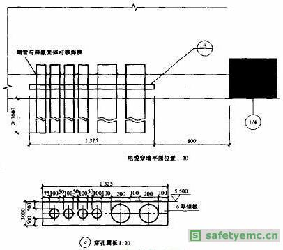 (3)電纜豎井處的電纜進出由于電纜豎井是作為同一個屏蔽區(qū)域,從電纜豎井至各層機房(非屏蔽區(qū))的管線處理也非常重要。做法如圖2所示