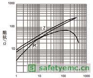 利用鐵氧體(圖2所示)在高頻電磁場(chǎng)中的損耗很大,對(duì)干擾能量有較強(qiáng)吸收作用的特點(diǎn),這種材料廣泛應(yīng)用于電子設(shè)備的干擾抑制方面。由于鐵氧體對(duì)高頻波的吸收作用(不是反射),可以降低電路中電感抑制電路的Q值,減小信號(hào)諧振問題。EMI抑制鐵氧體與在低頻或電源中使用的損耗小的電感材料特性正好相反。圖3顯示了在高頻時(shí)電阻分量是如何對(duì)阻抗特性起決定作用的。