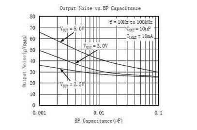 為降低基準(zhǔn)噪聲,用于連接基準(zhǔn)旁路電容。增大旁路電容能夠使基準(zhǔn)噪聲成為產(chǎn)生LDO輸出噪聲的次要因素,有利于減小輸出噪聲。建議使用陶瓷電容的典型值為470pF到0.01µF。也可使用此范圍以外的電容,但會對輸入電源上電時LDO輸出電壓上升的速度產(chǎn)生影響,旁路電容值越大,輸出電壓上升速率越慢。在使用時這點(diǎn)要注意。