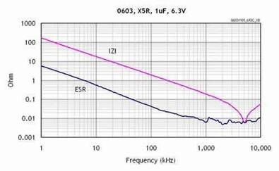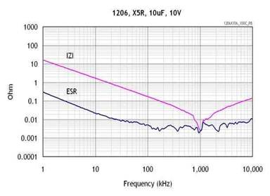 LDO需要增加外部輸入和輸出電容器。利用較低ESR的大電容器一般可以全面提高電源抑制比(PSRR)、噪聲以及瞬態(tài)性能。陶瓷電容器通常是首選,因?yàn)樗鼈儍r格低而且故障模式是斷路,相比之下鉭電容器比較昂貴且其故障模式是短路。輸出電容器的等效串聯(lián)電阻(ESR)會影響其穩(wěn)定性,陶瓷電容器具有較低的ESR,大概為10mΩ量級采用陶瓷電容時,建議使用X5R和X7R電介質(zhì)材料,這是因?yàn)樗鼈兙哂休^好的溫度穩(wěn)定性。圖為X5R的ESR和頻率曲線。