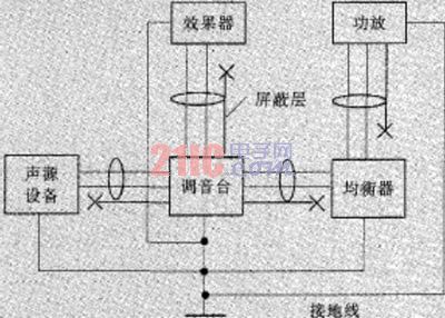 在音頻系統(tǒng)中,必須要求整個系統(tǒng)有良好的接地,接地電阻要4歐姆。否則音頻系統(tǒng)中設備由于各種輻射和電磁感應產生的感應電荷將不能夠流入大地,從而形成噪聲電壓疊加到音頻信號中。