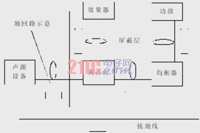 在不同設備的地線之間由于接地電阻的不同而存在地電位差,或在系統(tǒng)的內部接地存在回路時,則會引接地噪聲,2個不同的音頻系統(tǒng)互連時,也有可能產生噪聲,噪聲是由2個系統(tǒng)的地線直接相連造成的。