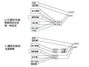 圖6電源和接地的第一種和第二種策略。注意,第二種要盡可能地將噪聲與敏感電路分開(kāi)。