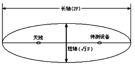 10kHz~1000MHz頻段的輻射測試場地應(yīng)該是一個空曠、平坦的場地,在其邊界范圍內(nèi)無架空線,附近無反射結(jié)構(gòu)物(如鋼筋水泥建筑和高大樹木等),而且具有足夠大的尺寸,使天線、試品和反射結(jié)構(gòu)物之間能充分分開。滿足標準的輻射測試場地應(yīng)該是一個由長軸等于兩倍焦距(F)、短軸等于倍焦距的橢圓所包圍的場地,如圖1所示。試驗時,EUT和測量天線將分別處在兩個焦點上。