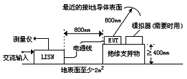 在屏蔽室內(nèi)測量時,可用地面屏蔽層或任意一壁的屏蔽層作為接地平板。試驗時,非落地EUT應(yīng)放在離地平板0.4m高的絕緣支架或臺子上。落地EUT則放在接地平板上,其接觸處應(yīng)相互絕緣或與正常使用時一致。所有EUT離其他金屬物體的距離應(yīng)大于0.8m。