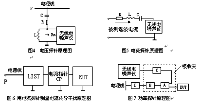國際曾有人建議對小型電子設(shè)備采用類似于CLSPRl4一l(對應(yīng)的我國國家標準是GB4343—l《家用和類似用途電動、電熱器具、電動工具以及類似電路的無線電干擾特性的測量方法和允許值》)中所提供的吸收鉗(或稱為功率探針、鐵氧體鉗)方法來測試EUT對外的輻射功率。利用吸收鉗可以測量5MHz—300MHz的傳導(dǎo)干擾功率。采用此法的前提是EUT尺寸較小,其輻射到空間的能量主要是通過EUT的電源線等逸出的。因此,對這部分能量的測量可以用一個環(huán)繞電源線的吸收裝置來實現(xiàn)。這個吸收裝置便被稱為吸收鉗。這個方法的優(yōu)點是簡便易行,對環(huán)境要求不高,在屏蔽室里便可進行,而且測試結(jié)果有很好的重復(fù)性和可比性。電壓、電流傳導(dǎo)干擾可分別由電壓探針和電流探針測出。圖4、圖5分別為電壓探針和電流探針原理圖。圖6為電流探針測量電流傳導(dǎo)干擾原理圖。功率探針原理見圖7。