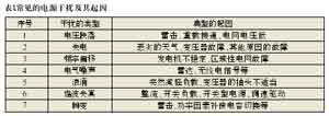造成電源干擾復雜性的第二個原因是干擾表現(xiàn)的形式很多,從持續(xù)期很短的尖峰干擾直至電網(wǎng)完全失電,其中也包括了電壓的變化(如電壓跌落、浪涌和中斷)、頻率變化、波形失真(包括電壓和電流的)、持續(xù)噪聲或雜波,以及瞬變等。我們根據(jù)國內(nèi)外的抗擾度測試的一系列標準和實際應用中常常出現(xiàn)的問題,總結(jié)了電源干擾的常見起因,如表1所示。