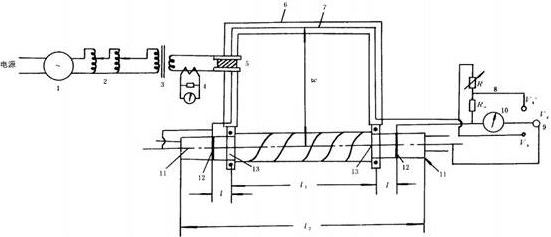 按下圖裝置,測試電纜金屬護(hù)套及鎧裝層的理想屏蔽系數(shù)γ0s=VC/VS(線芯上的感應(yīng)電壓mV;電纜式樣金屬套上的縱向干擾電壓mV)。