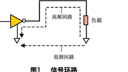 對低頻信號,要使電流流經電阻最小的路徑;對高頻信號,要使高頻電流流經電感最小的路徑,而非電阻最小的路徑(見圖1)。對于差模輻射,EMI輻射強度(E)正比于電流、電流環(huán)路的面積以及頻率的平方。(其中I是電流、A是環(huán)路面積、f是頻率、r是到環(huán)路中心的距離,k為常數。)