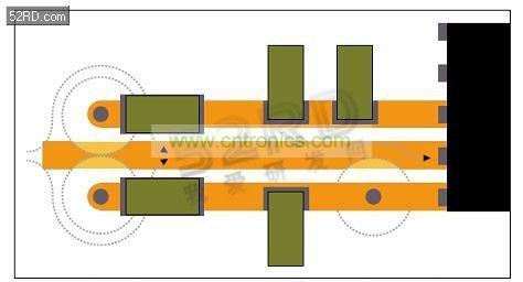 時鐘和控制線路應(yīng)由內(nèi)部接地層或頂層接地灌流(ground pour)與RF信號線路隔離。如果不能使用接地隔離信號,那么線路布線應(yīng)確保直角交叉。因為時鐘或控制線路發(fā)射的磁通線路會圍繞干擾源線路的電流形成放射柱形等高線,它們將不會在接收器線路中產(chǎn)生電流。放慢上升時間不但可降低轉(zhuǎn)折頻率,而且還有助于減少干擾源的干擾,但時鐘或控制線路也可充當(dāng)接收器線路。接收器線路仍可作為將寄生信號導(dǎo)入器件的導(dǎo)管。