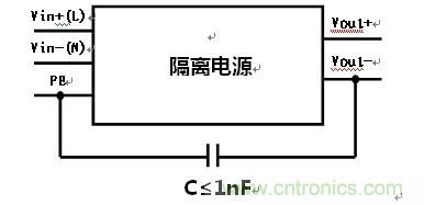 那么,如果隔離電源在應(yīng)用過程中一定要進(jìn)行輸出Vout-連接到PE端,可以按照上圖的連接思路,通過電容將這兩個(gè)端子進(jìn)行連接,這樣設(shè)計(jì)保證了客戶特殊使用要求的同事,對于上述問題也能夠有效的規(guī)避。